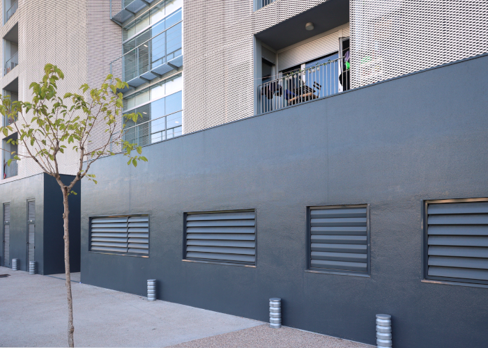 En éste proyecto, hemos participado con celosías de lamas de aluminio de gran formato, UPO-350 y con nuestras celosías de lamas orientables más populares (las UPO-150) en su variante reforzada, para la zona de planta baja. La mención en los premios García Mercadal 2023 se suma al accésit del año pasado al Centro Cívico de Cuarte
