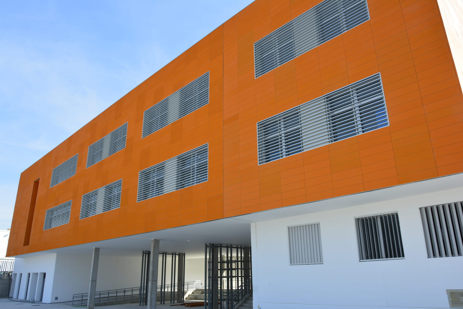 Como complemento a éste producto, y para cubrir las necesidades de protección solar en las zonas más sensibles (aulas, salas de profesores etc), se ha utilizado la combinación de lamas móviles tipo UPO-150 y fijas tipo UPR-150 con éste excelente resultado.